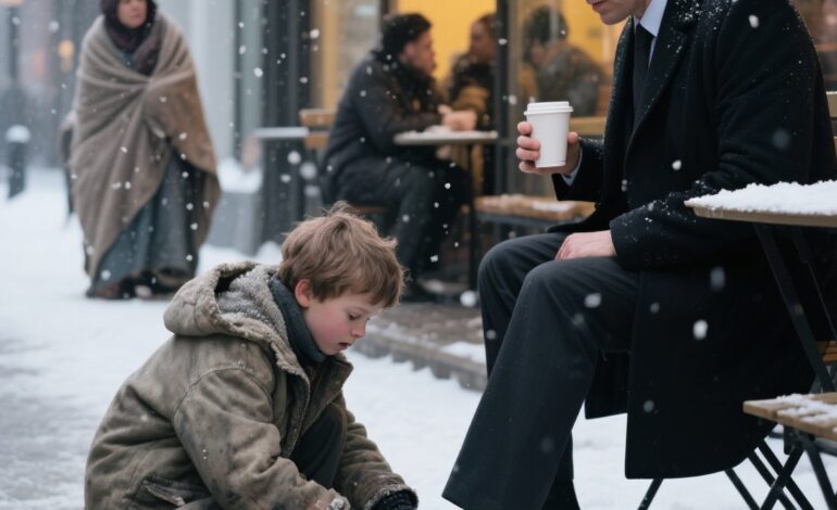 Across the plaza, Victor Harrington had just stepped out of the tower. His polished shoes clicked against the marble steps, his phone pressed to his ear as he discussed millions with indifference. But when that voice—his daughter’s voice—reached him, everything stopped.